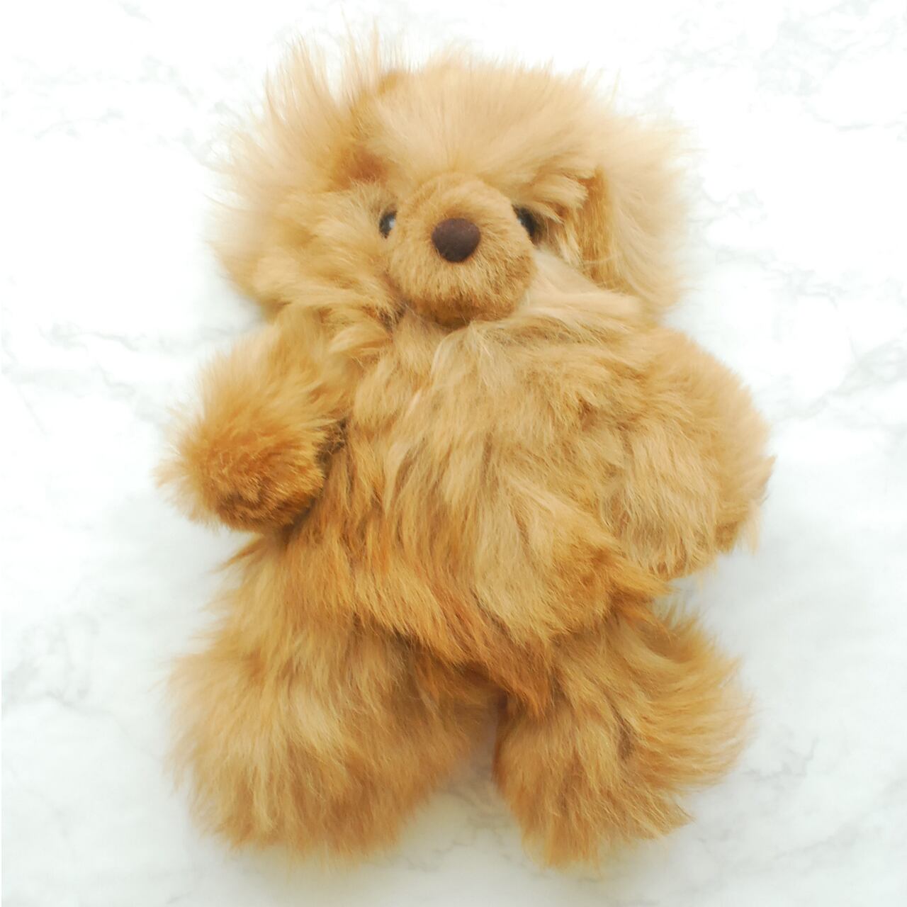 特注品のお座りできるタイプ(背もたれがあるとより安定します)の希少なアルパカテディベアです。